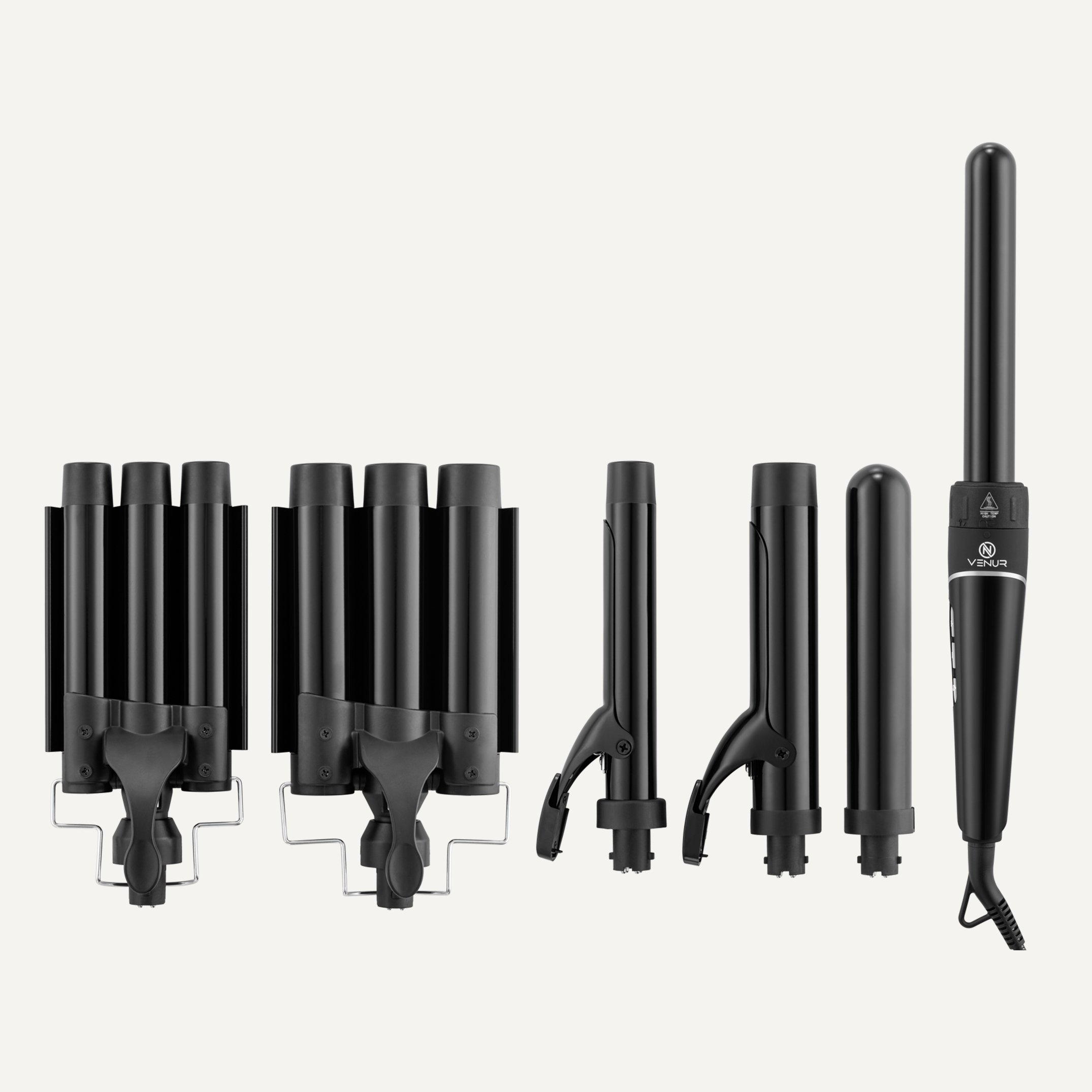 Elke dag een andere krul? Deze krultang heeft zes verschillende opzetstukken waardoor je altijd kan variëren. Zo creëer je elke dag weer een unieke uitstraling.